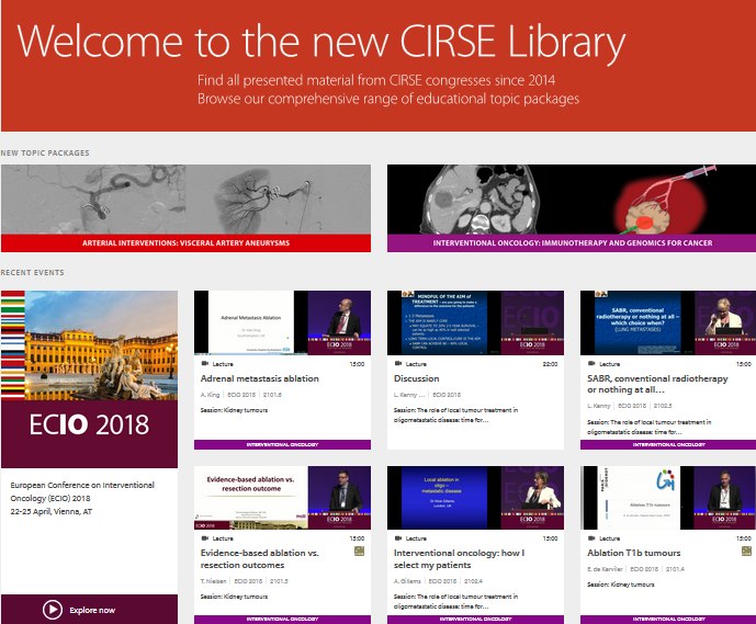 Na library.cirse.org byla otevřena knihovna interaktivních materiálů, zejména přednášek z akcí konaných CIRSE, ECIO, GEST, které jsou minimálně do letošního CIRSE (konec září) volně přístupné.