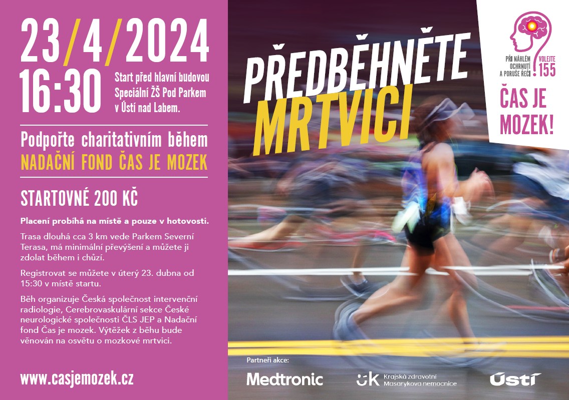 Běh na poporu Nadačního fondu Čas je mozek dne 23/4/2024 v 16:30 - výtěžek bude věnován na osvětu.