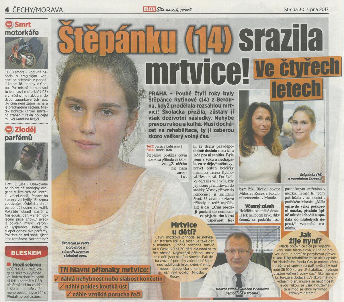 30. 8. Blesk: Štěpánku (14) srazila mrtvice! Ve čtyřech letech - tiskem