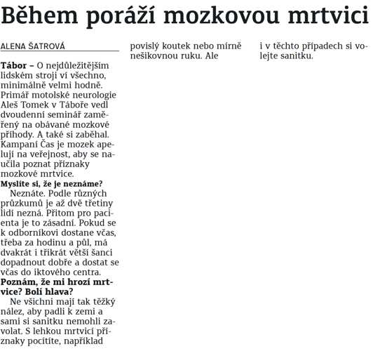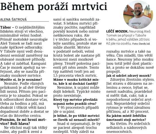 8. 9. Českokrumlovský deník: Během poráží mozkovou mrtvici - (viz příloha)